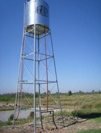 Los tanques cilíndricos se construyen en chapa galvanizada unidas con remaches y cuentan con puertas de inspección en la parte superior. Cubren toda la gama de necesidades, desde los 1.000 hasta los 50.000 ltrs. Pudiéndose ubicar en torres que van desde los 4 a los 15 m de altura.